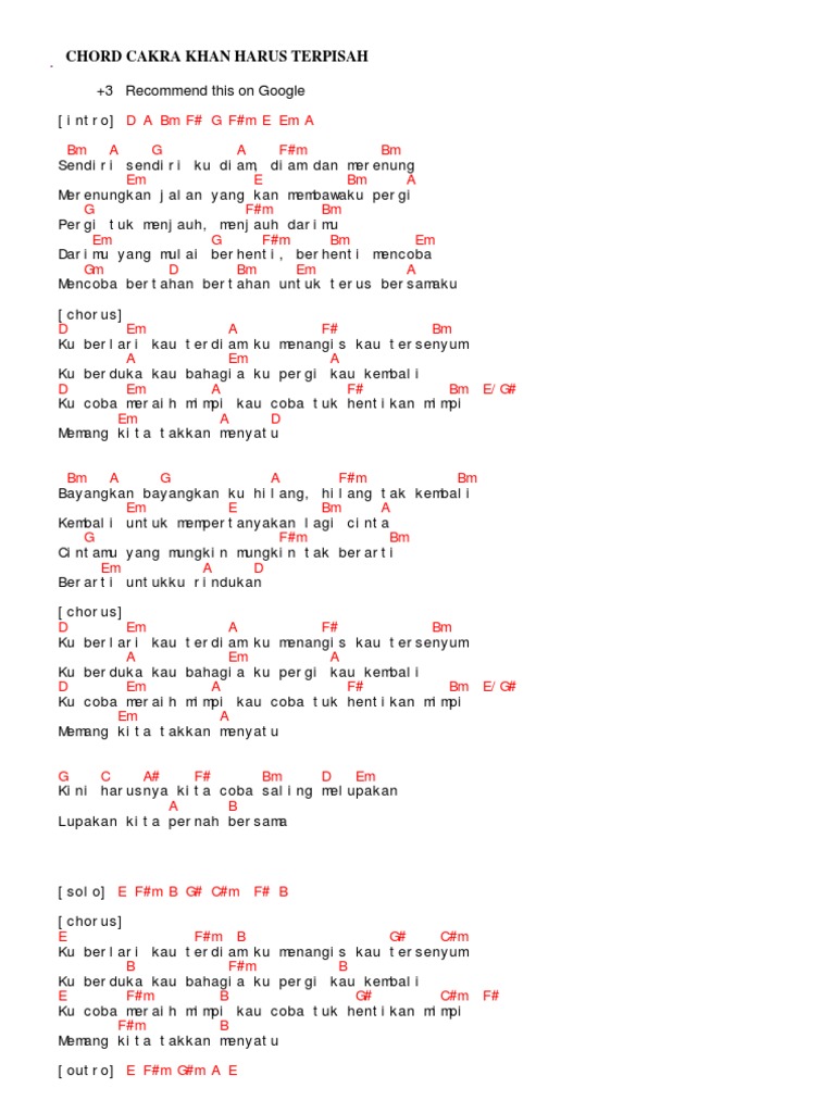 Chord Cakra Khan Harus Terpisah Chordfrenzy