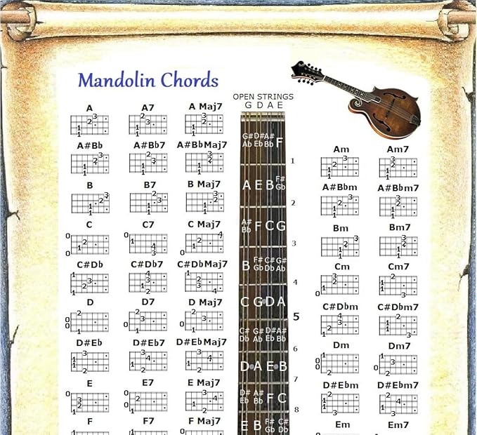 Amazon Com Mandolin Chords Poster Note Locator Chart Musical