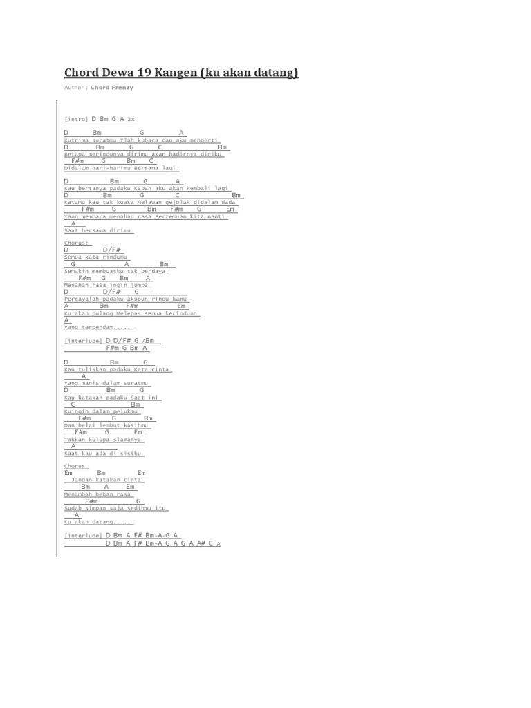 Chord Dewa 19 Kangen Ku Akan Datang Chordfrenzy