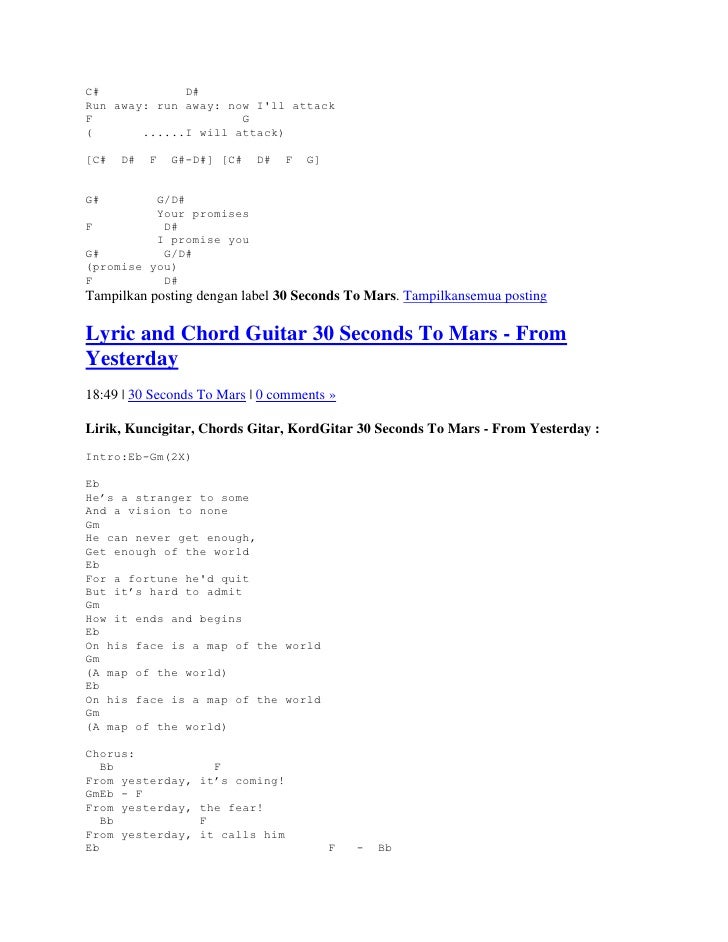 Song Lyrics With Guitar Chords For Yesterday Once More The