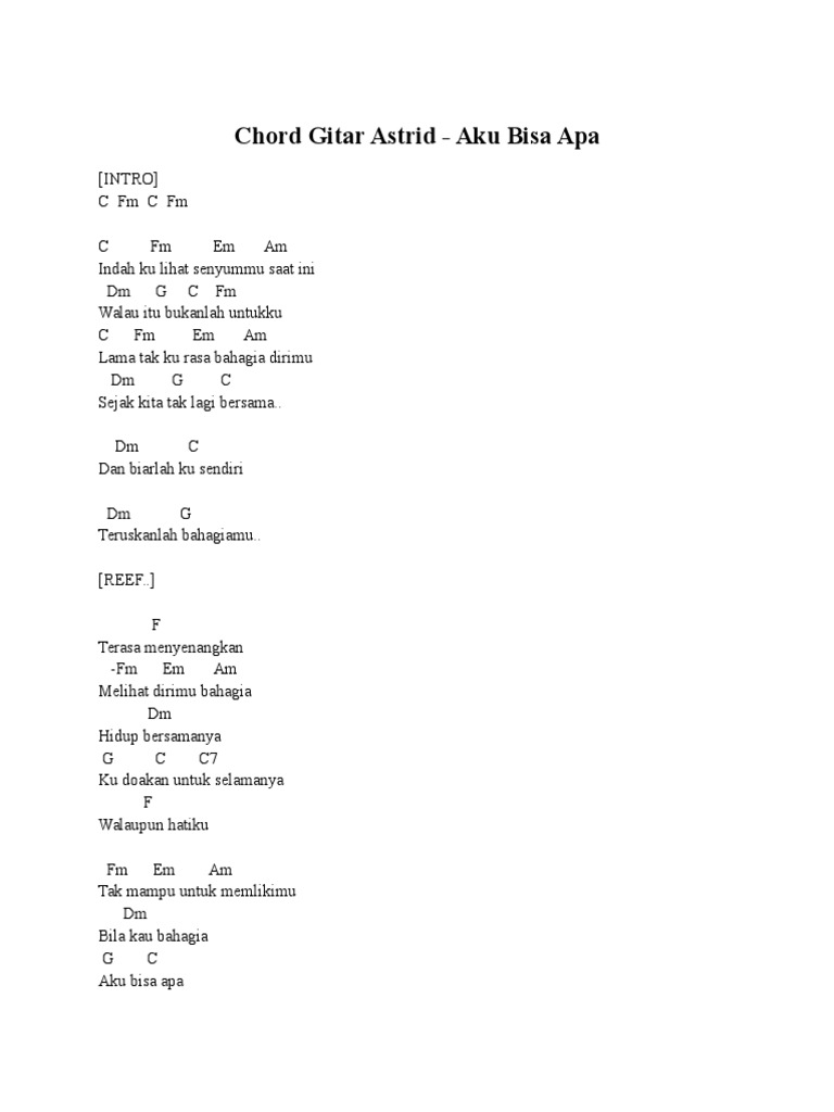 C dm em jangan tanyakan perasaanku f fm em jika kau pun tak bisa beralih a dm em fm dari masa lalu yang menghantu i mu dm g karena sungguh ini tidak adil.