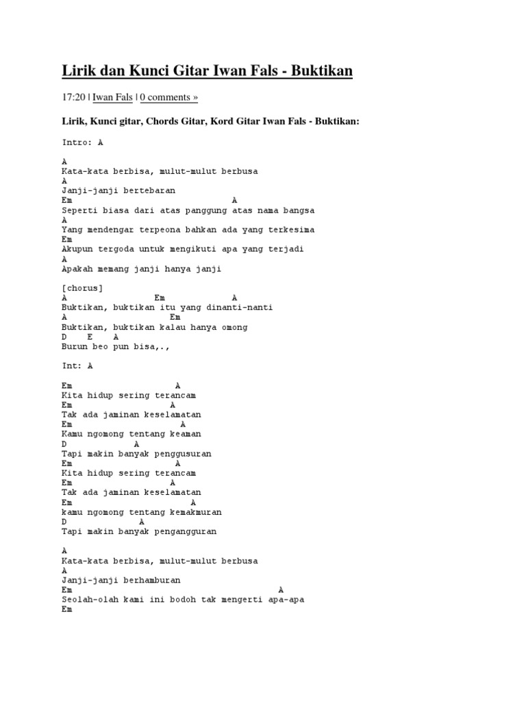 Koleksi Lirik Lagu Plus Kunci Gitar Chord Gitar Iwan Fals Yang