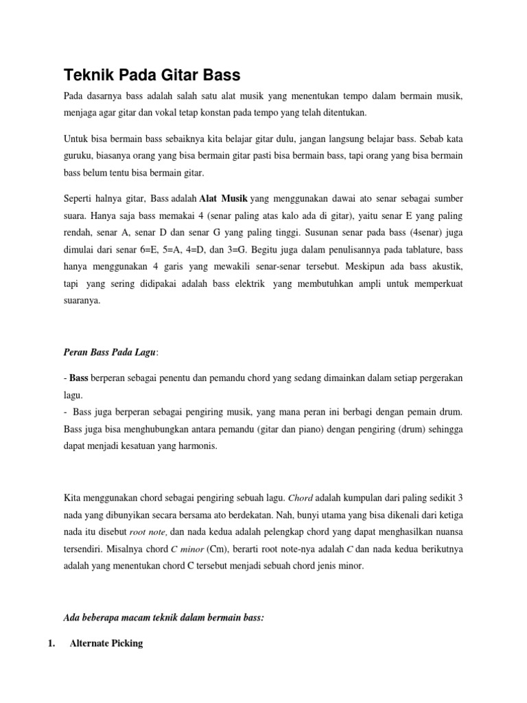 Lyrics Lagu Kunci Dasar Pada Bass