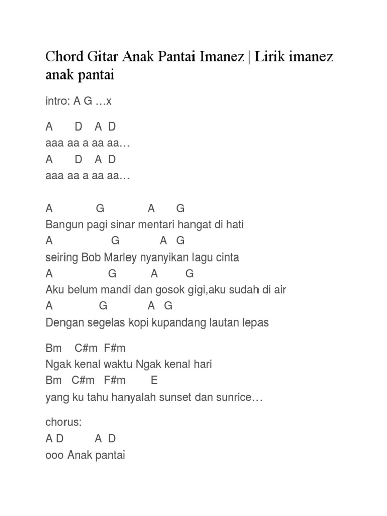 Chord Kunci Gitar Dan Lirik Anak Pantai Imanez Lagu Wajib