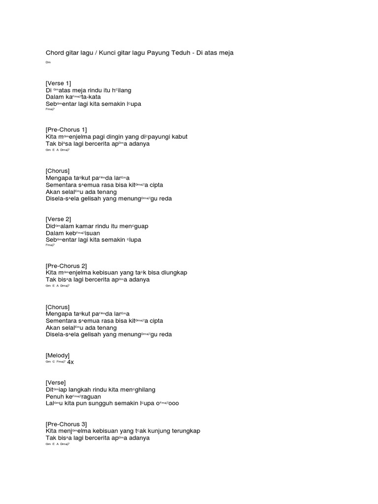Chord Gitar Lagu Payung Teduh Diatas Meja