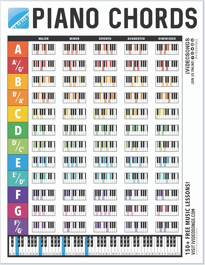 Amazon Com Ivideosongs Piano Chords Chart 8 5 X11 Full Color