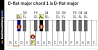 Play e. Listen to it and learn about its interval structure. On the picture of the keyboard you can see the three notes of the ab chord marked in red color.